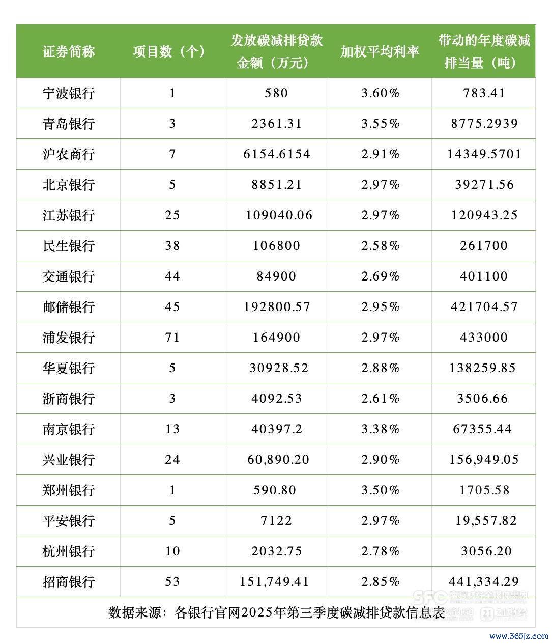 21世纪经济报说念记者在ESG强信披银行的不雅察中发现,共有17家银行泄露了2025年第三季度的最新数据,其余部分银行的统计时辰节点多为2025年第二季度。17家银行共计向353个花式披发了61.90亿元的碳减排贷款,带动超170万吨二氧化碳当量的减排量,加权平均利率为3%。